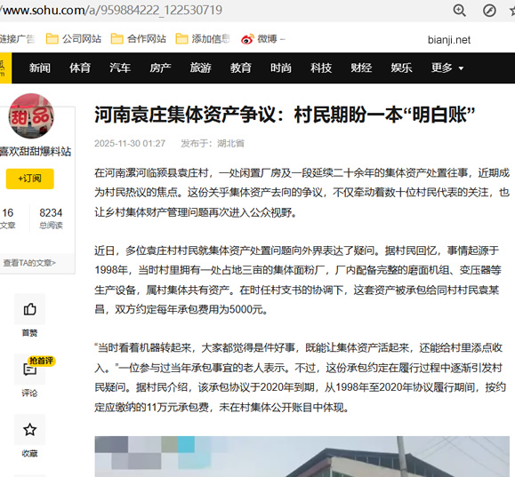 乡村振兴的推进离不开村集体的凝聚力,而集体资产的规范管理是维系这份凝聚力的重要支撑。袁庄村的集体资产争议,不仅是该村面临的具体问题,也反映出乡村治理中需要完善的环节。公众期待相关争议能够得到妥善处理,集体资产得到规范管理,为乡村发展筑牢基础。